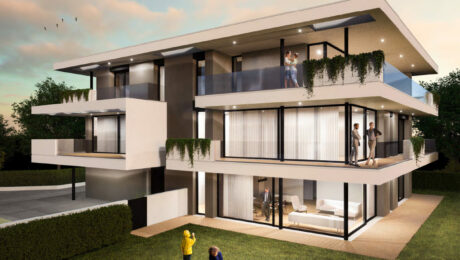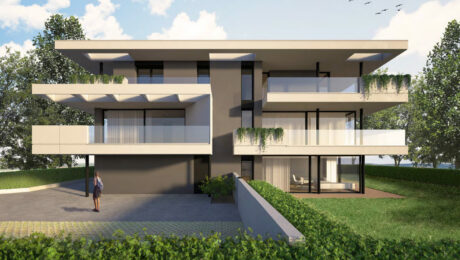 Edificio residenziale di quattro appartamenti sviluppati su due piani fuori terra che si inseriscono nel contesto urbano di Treviso in zona Santa Maria del Rovere.