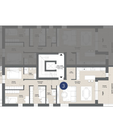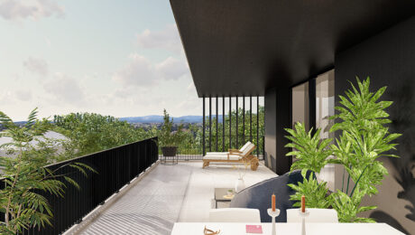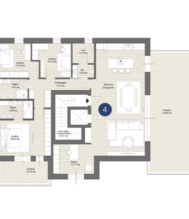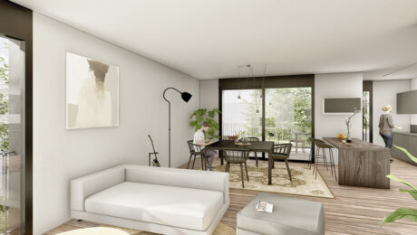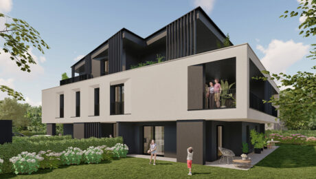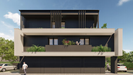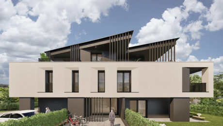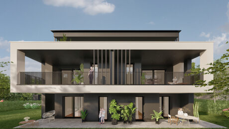 Il progetto offre 4 RESIDENZE AUTONOME su tre piani. Ogni abitazione sarà caratterizzata da ambienti confortevoli pensati a misura di famiglia; nei soggiorni, la percezione dello spazio sarà amplificata dalle pareti vetrate che offriranno soluzione di continuità con il portico e il giardino perimetrale al pian terreno, con le logge e le ampie terrazze ai piani superiori.